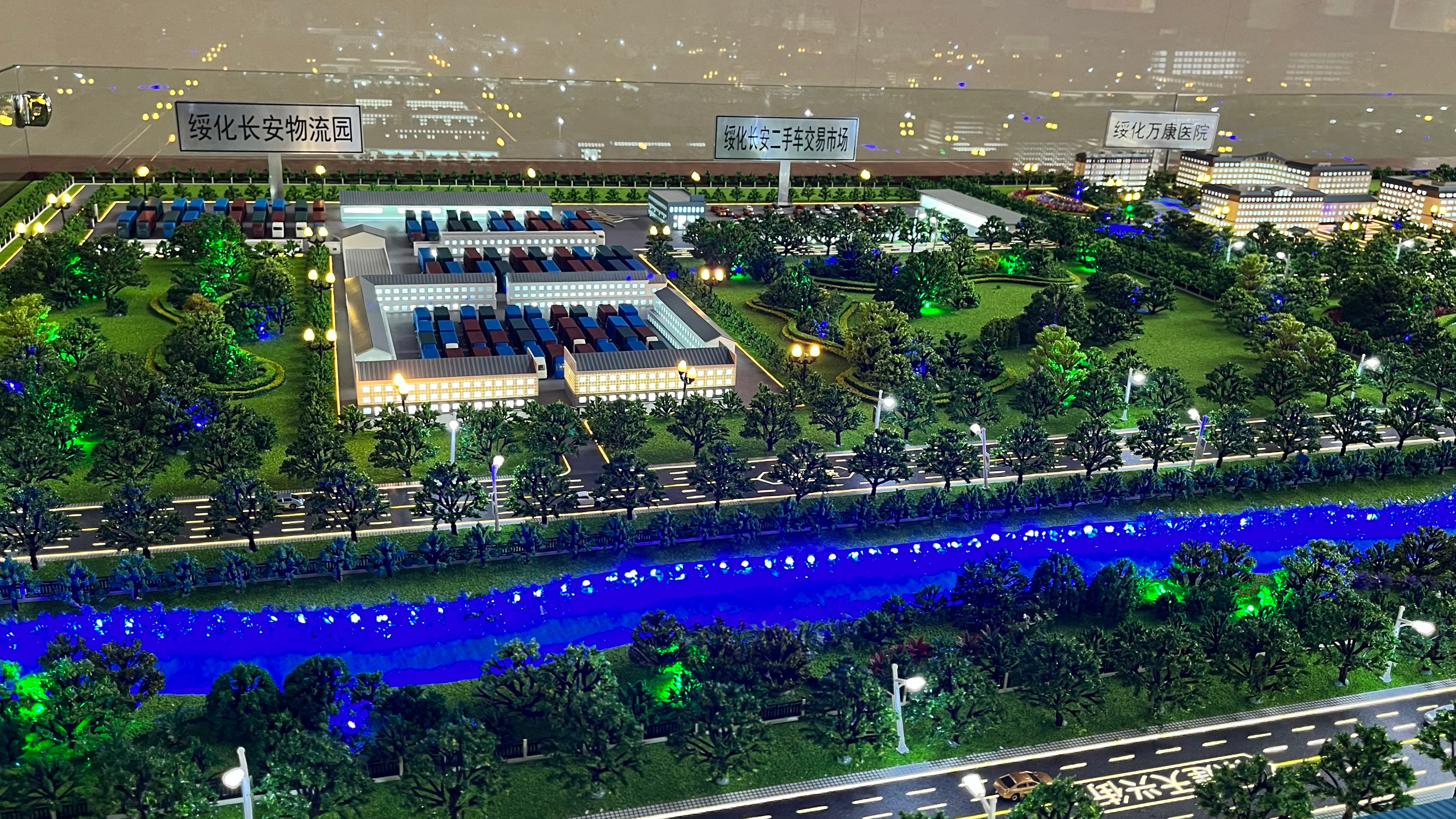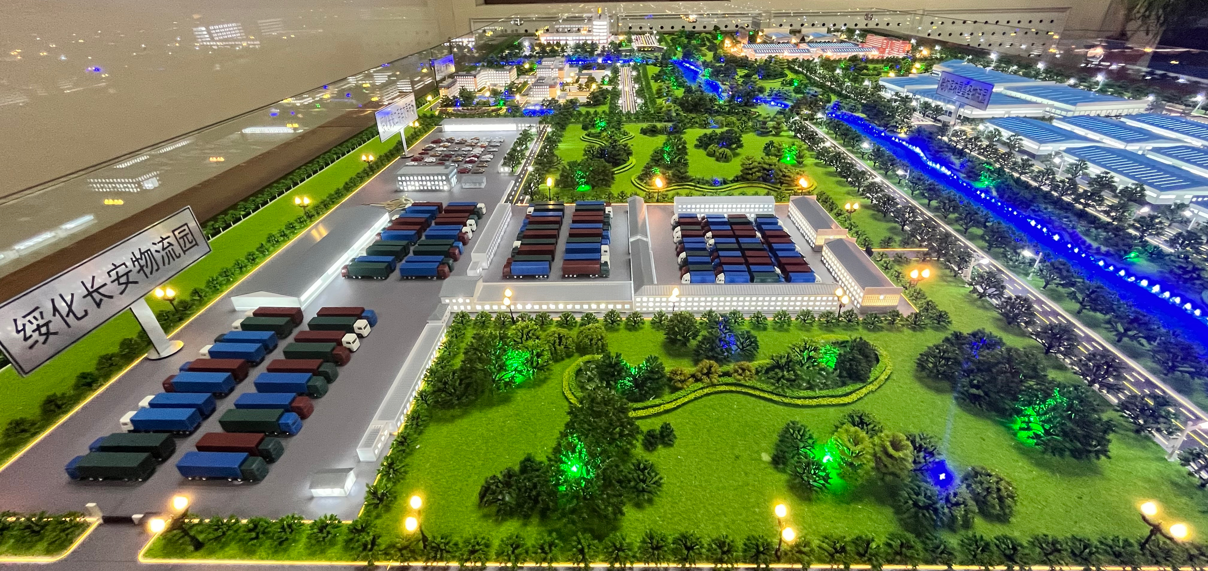 除此之外,沙盤的很多細節(jié)也都做到了極致。沙盤中不同項目的格局、交通條件各不相同,物流園區(qū)項目的庫房、各個樓宇的層高、樓棟分布、樓間距等情況也極盡還原。除了項目本身,周邊配套的水系、綠化、交通路網(wǎng)等也都十分清晰可鑒,讓觀看者對項目周邊的規(guī)劃布局一目了然。
