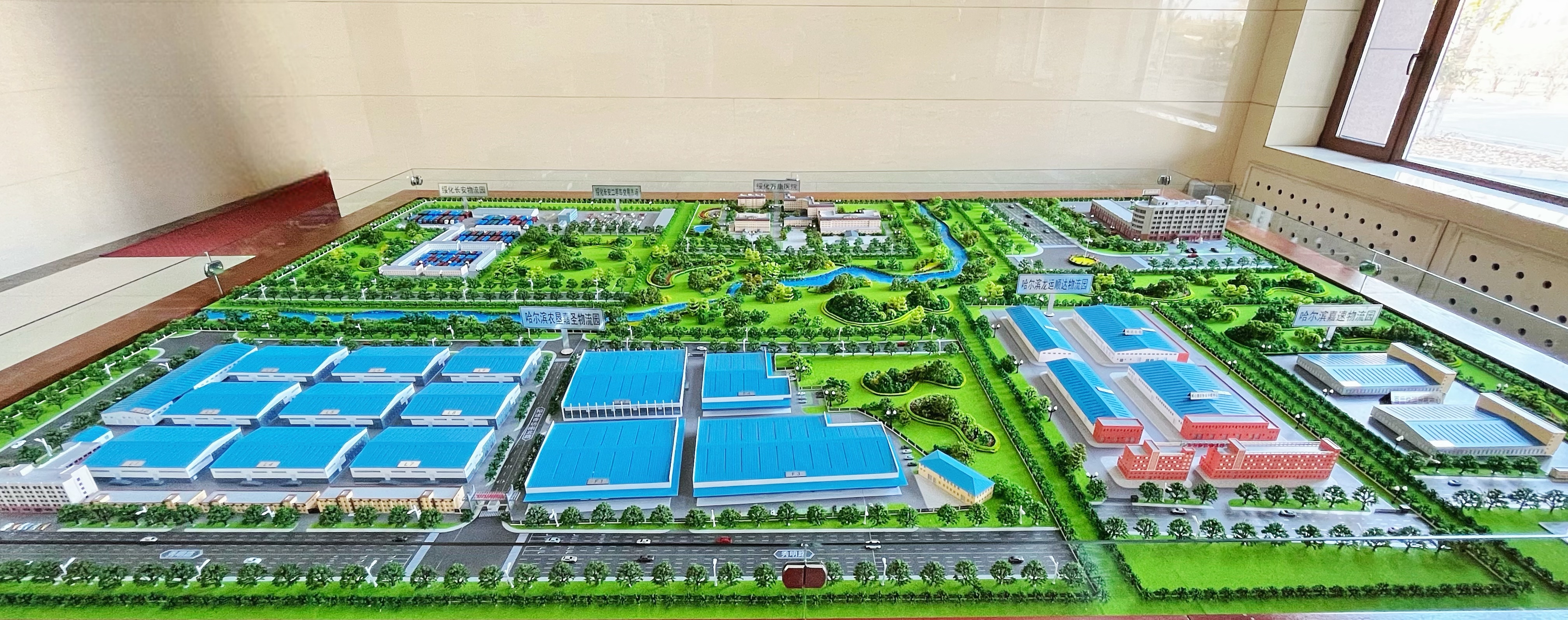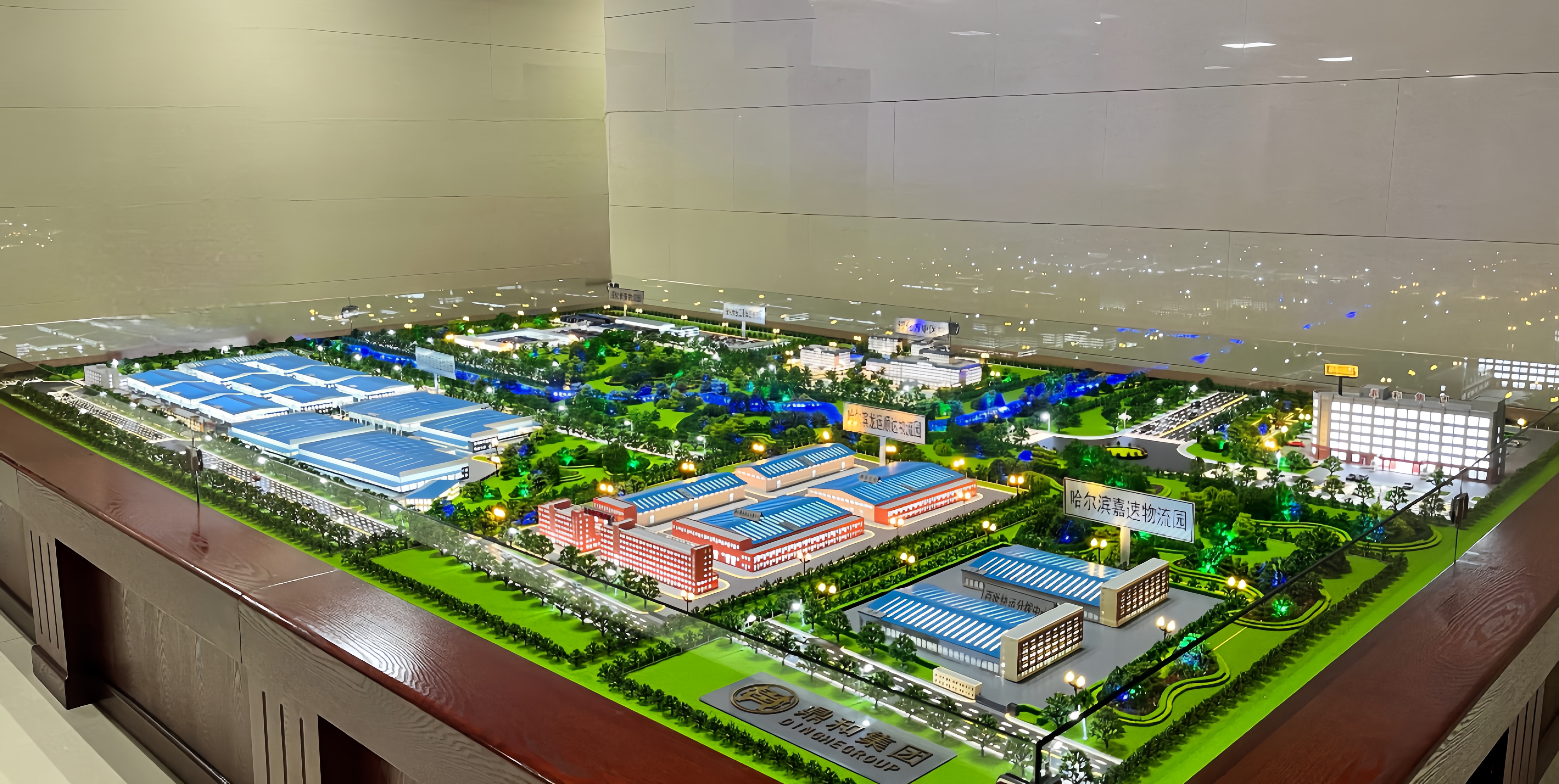鼎和集團實景沙盤嚴格按照規(guī)劃標準制作,韻動的建筑外觀、極具禮序的園區(qū)布局、立體的綠化環(huán)境、完備的周邊交通條件等項目基本信息精準做到等比例實體還原,360度全方位的呈現(xiàn)了集團總部、四大物流園區(qū)和綏化萬康醫(yī)院等的整體概況。